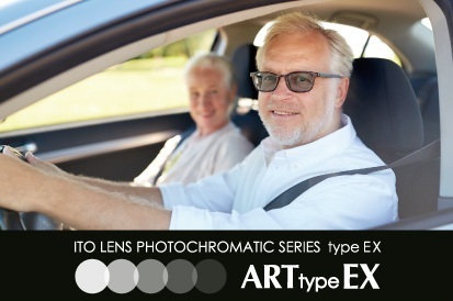 従来の調光レンズは紫外線が当たると色(濃度)が変化します。一方、可視光調光レンズは、光そのものに反応し、色(濃度)が変化するため、紫外線カットガラスに覆われた車中においても、色の薄いサングラスとしてご利用頂けます。